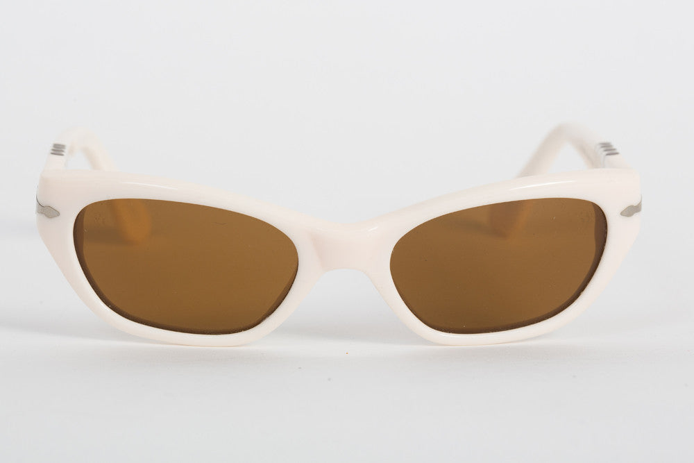 Classic Cat-Eye Frame Shape From Persol For  'The Lucky Young One' White Frame Sunglasses With Brown Tanned Lenses 'Very Special' Italian Hand Mad...
