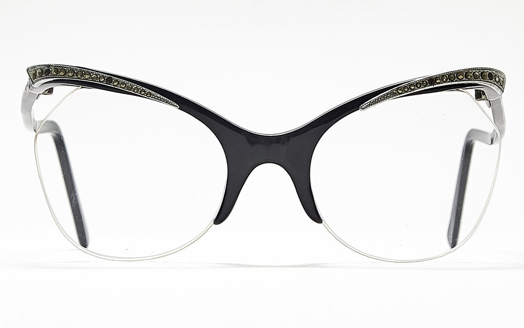 New Old Stock Made In France 1950's 'Rare' Eyeglasses Item No ; 1950s_Cateye-black-stud 100% Authentic Vintage Eyeglasses UNWORN & DISCOVERED b...